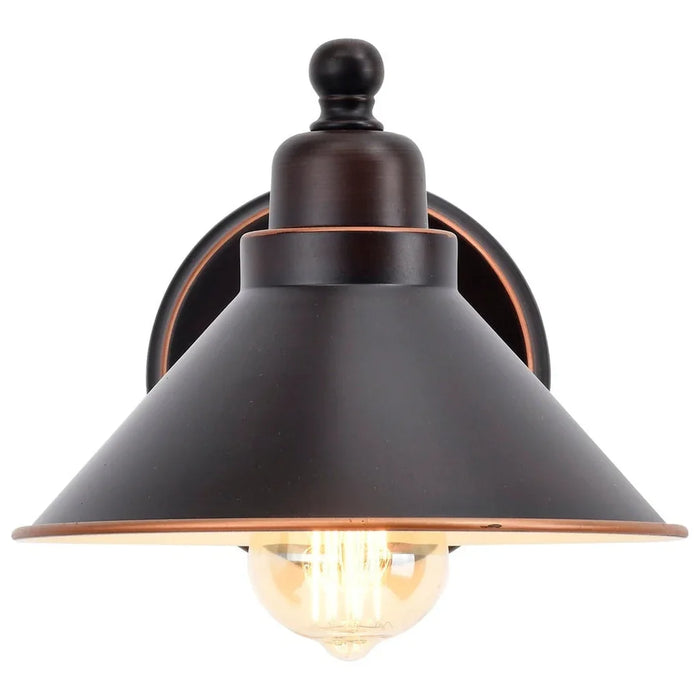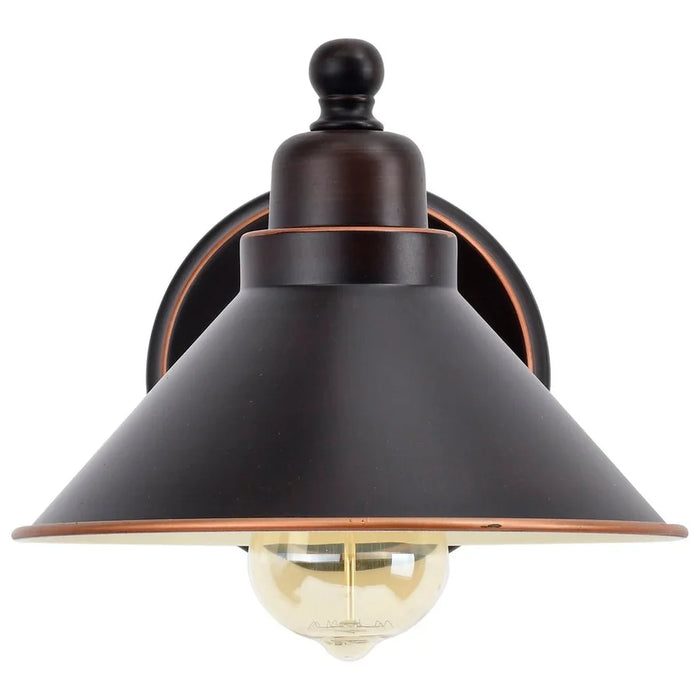 • Bridgeview Wall Sconce with a transitional design features a Mission Dust Bronze finish and a metal shade