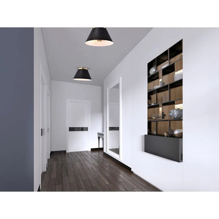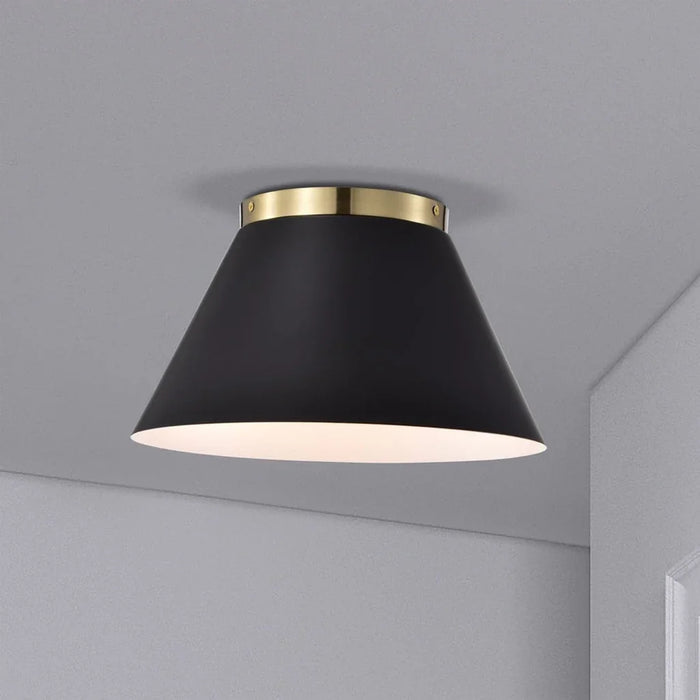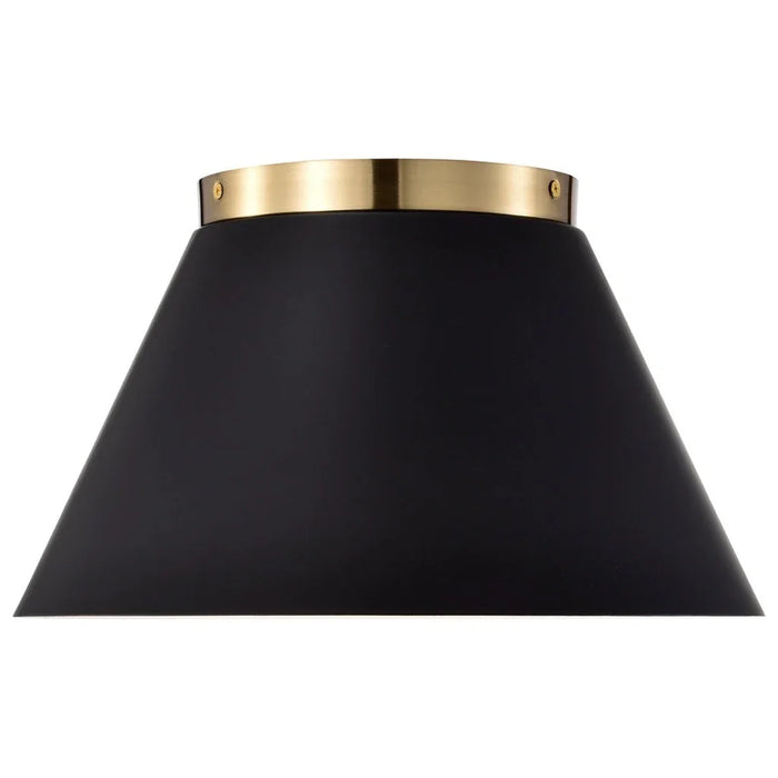With subtle detailing, the Dover small flush mount is graceful yet unassuming. The simple black shade features a white lining to reflect the light, and the trim is finished in vintage brass to match the fixture's body. Place over a table in an eat-in kitchen, or bring added light to a dark hallway or entry.