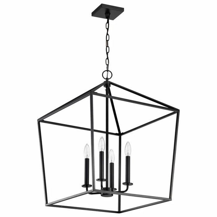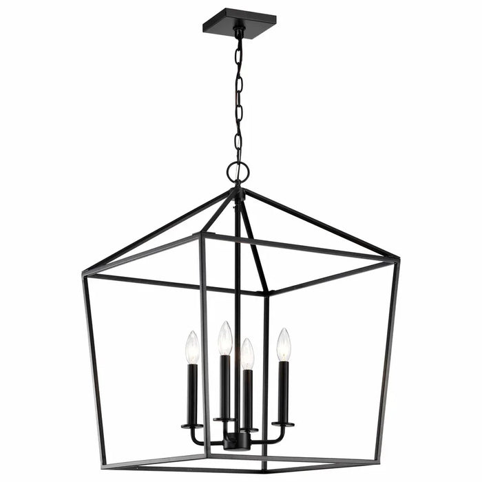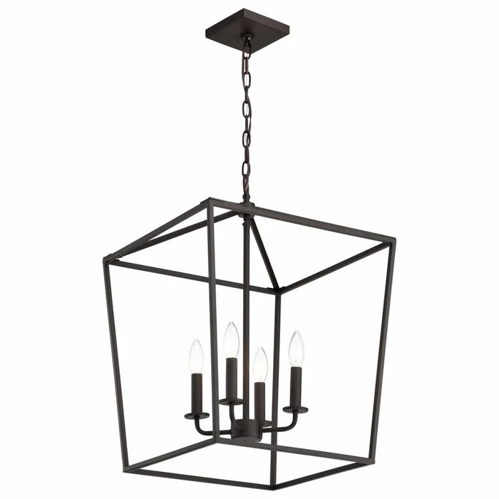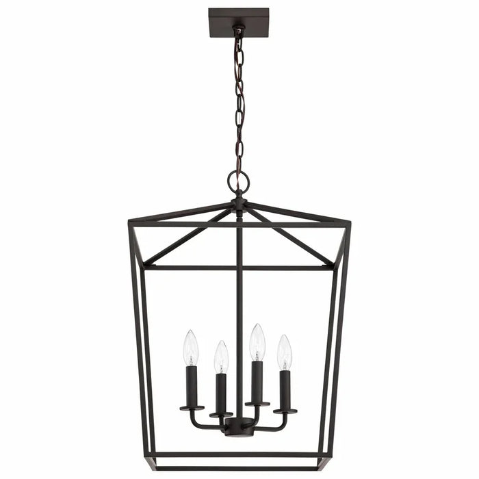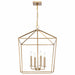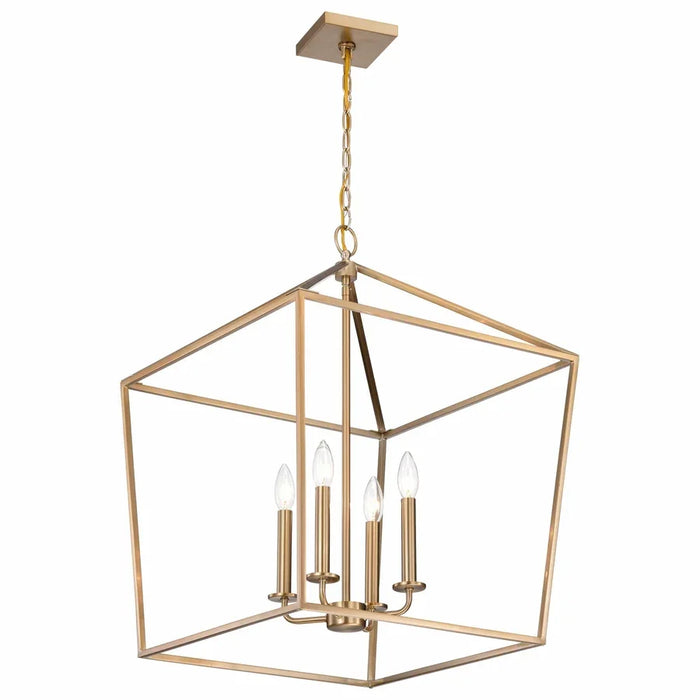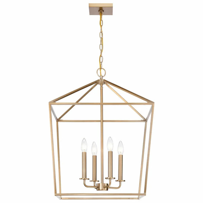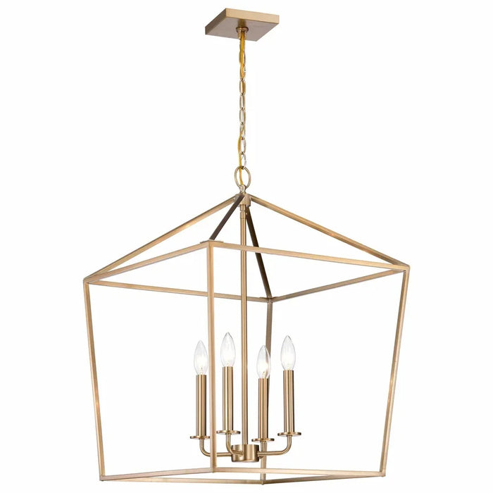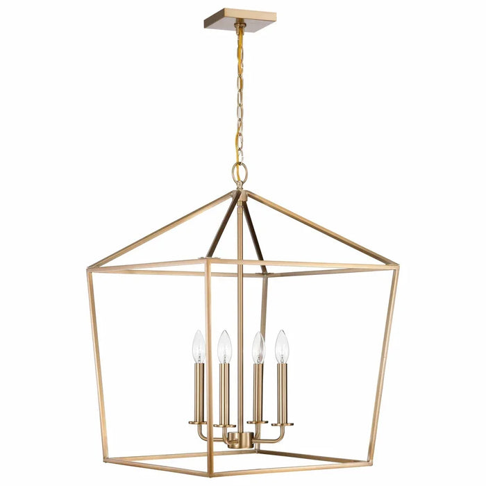 A stylish lighting fixture that combines transitional elements with minimal design, Emma is a knockout. The warmth of the three, lovely finishes to choose from on the simple framework is highlighted by four candelabra bulbs, exuding elegant charm without excessive ornamentation. The fixture is versatility at its finest, either taking center stage as the focal point of a room's design or as a backdrop to suit any décor. Greet your guests to a romantic ambiance in an entry way or illuminate an enchanting evening in a dining room. Choose a small or large size pendant, finished in burnished brass, matte black, or dark bronze. Whichever space you choose, Emma is sure to be stunning.