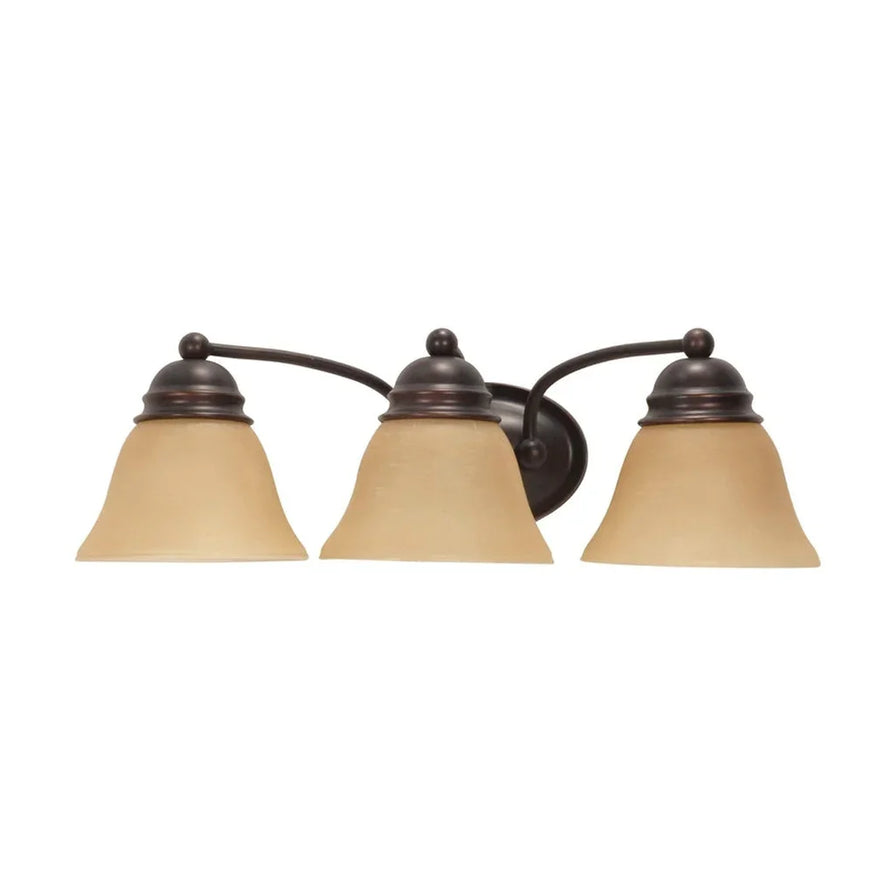 The Empire 3-light, 21 inch vanity is a stylish lighting solution for the home. Illuminate hallways, bathrooms, and living rooms with this deep rich mahogany vanity featuring champagne linen washed glass. Elegant and traditional, this 3-light vanity adds sophistication to any home.