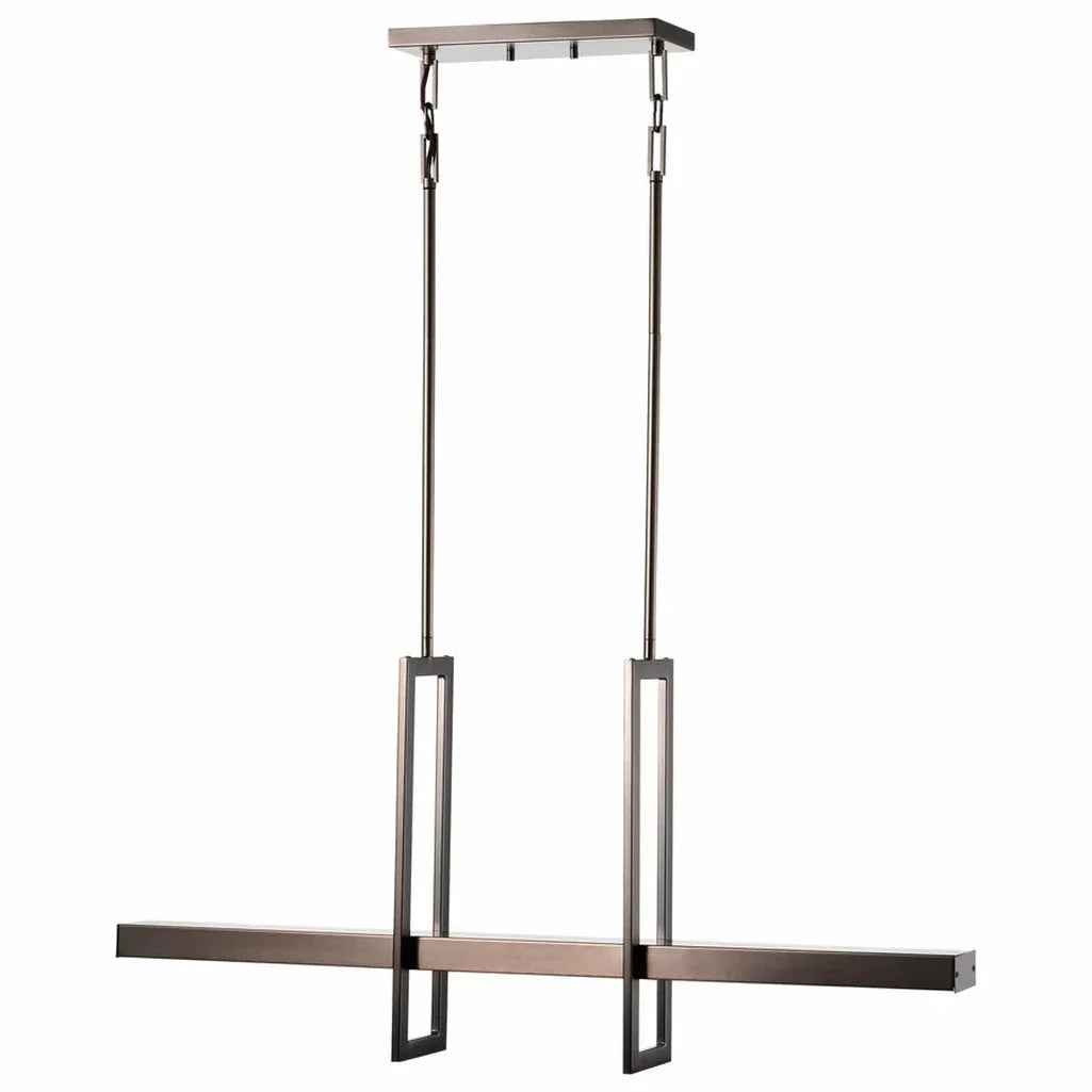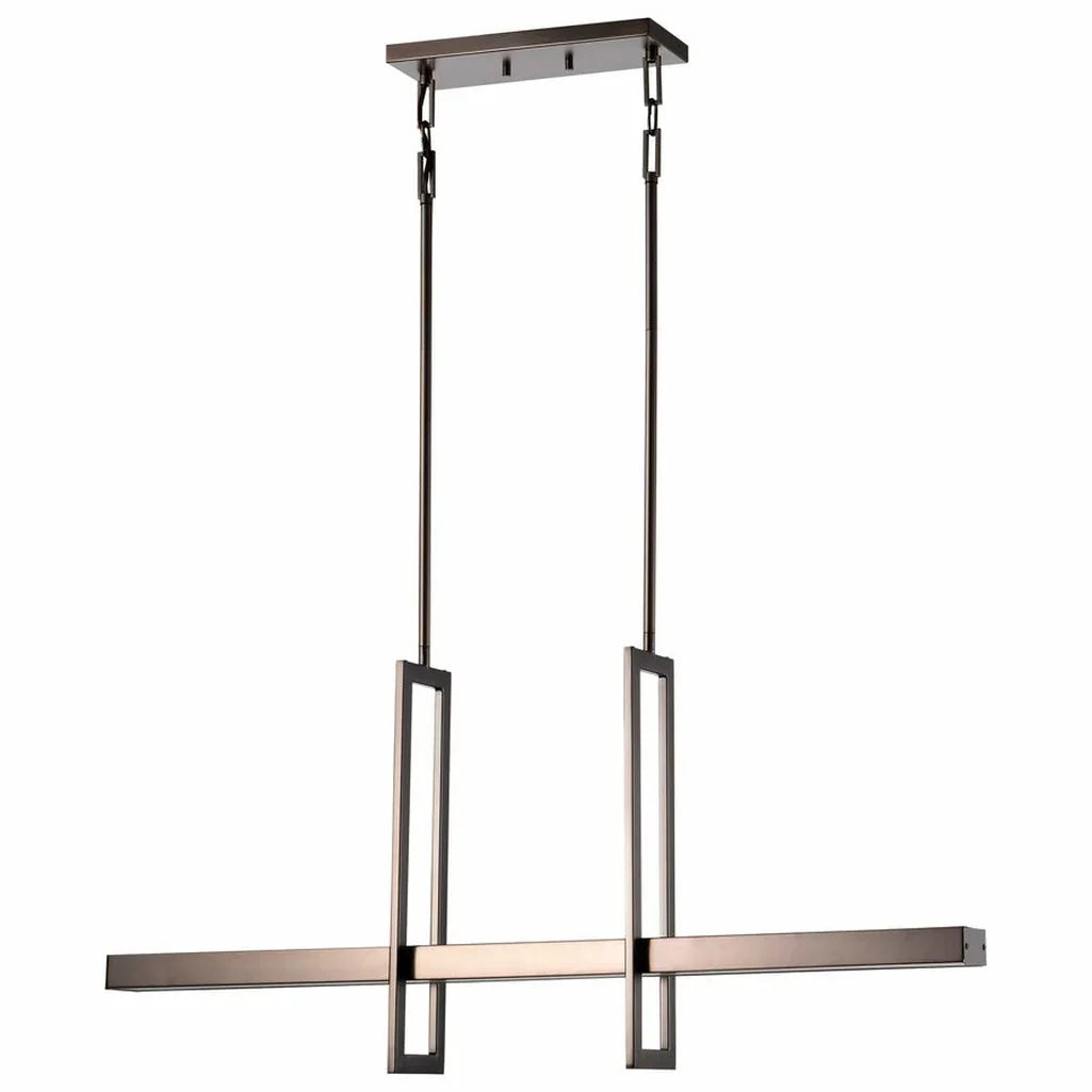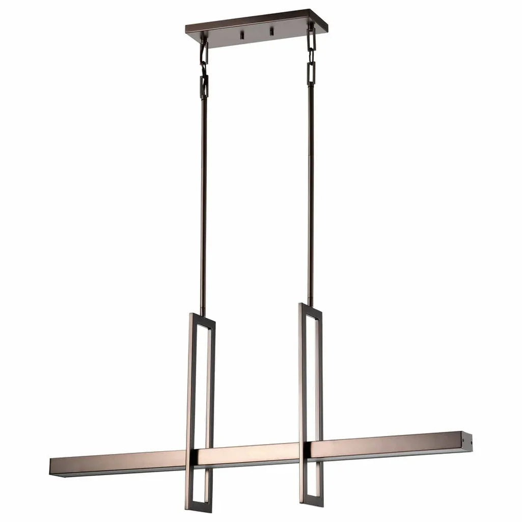 The Frame LED Island Light offers contemporary style in a minimalist design. It features airy, open rectangles parallel to each other supporting the integrated LED light source and is finished in a rich hazel Bronze.
