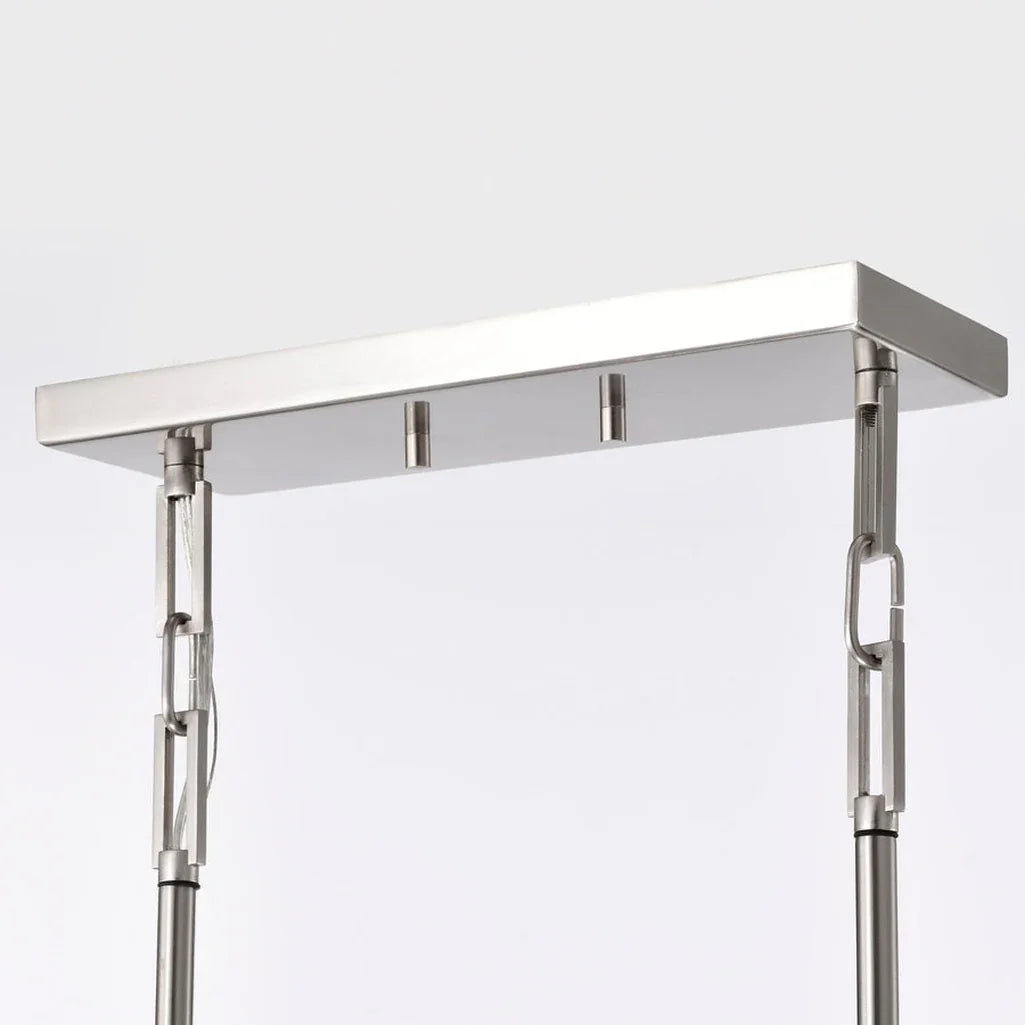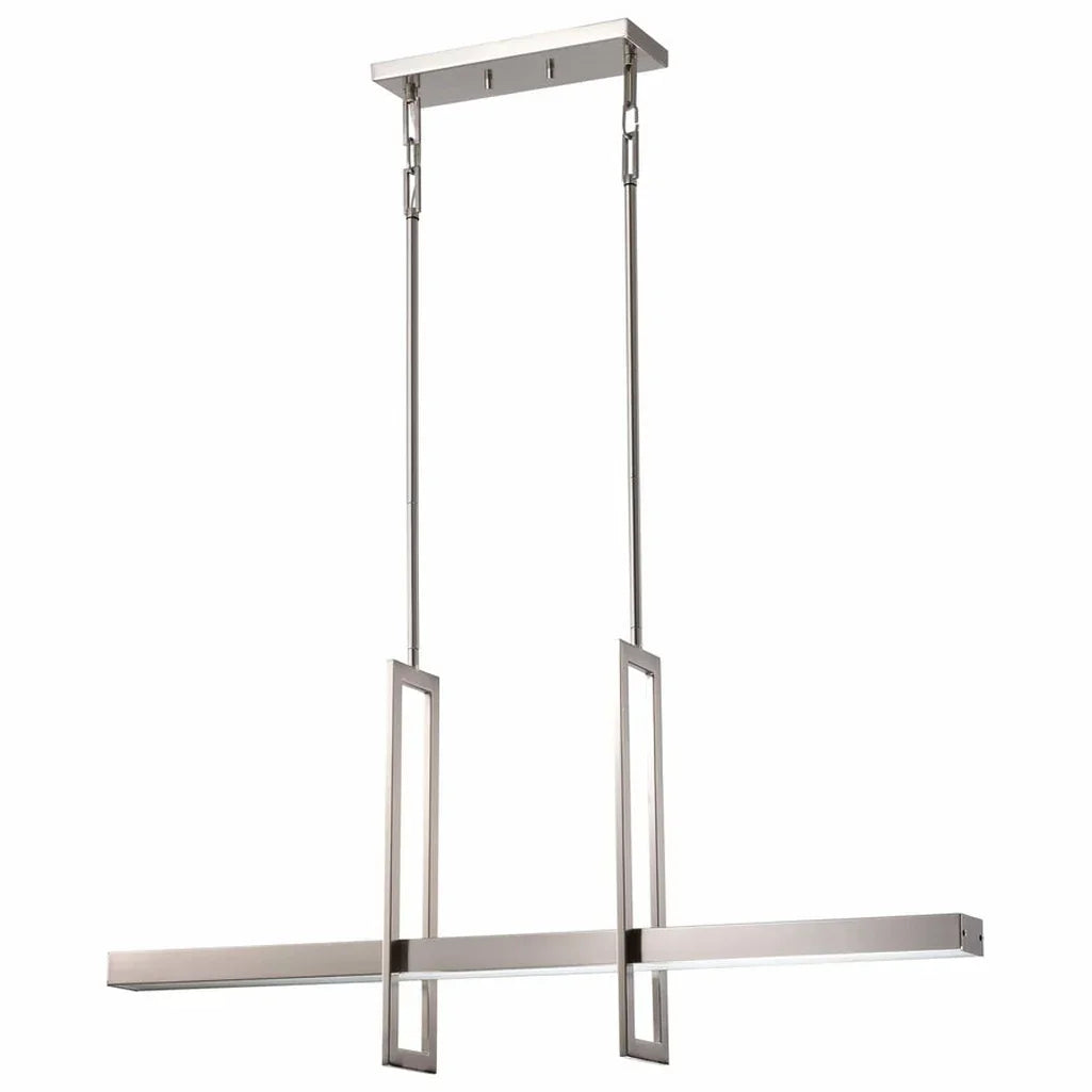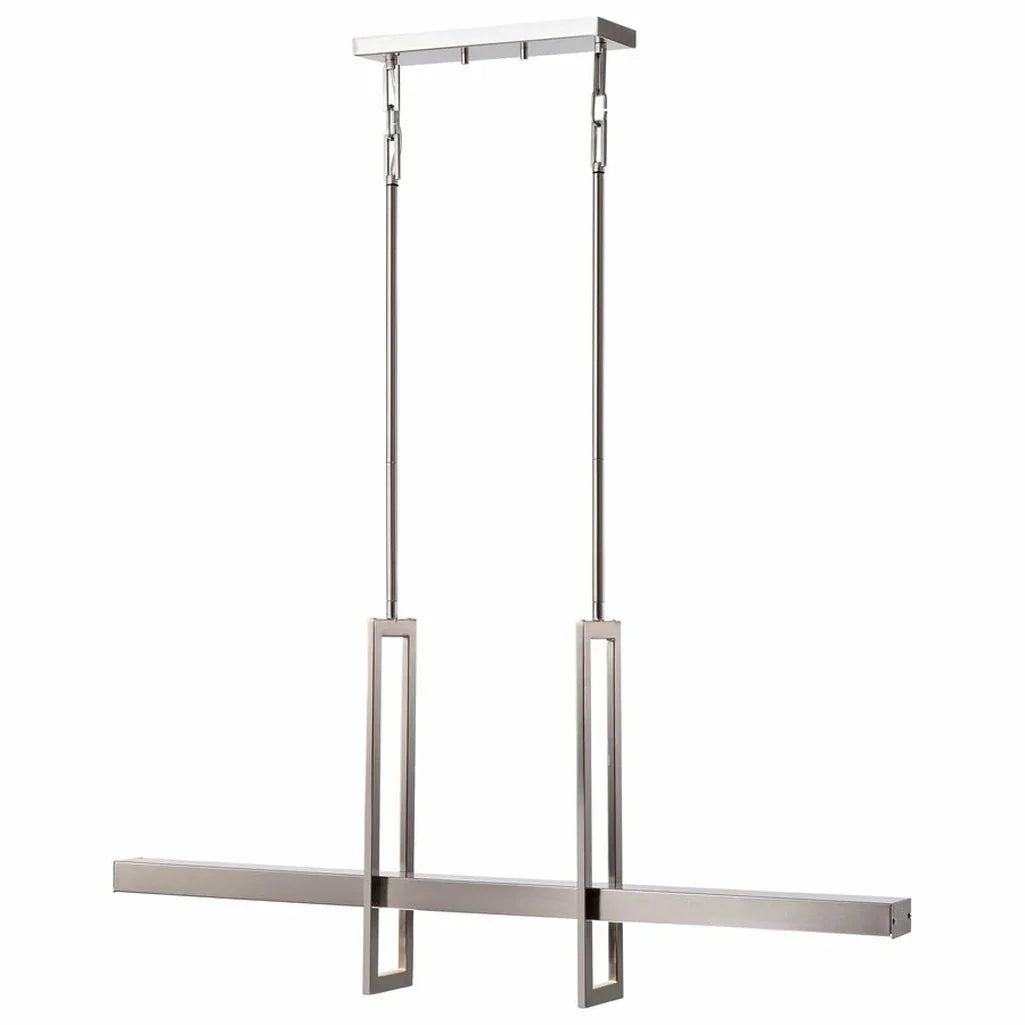 - Framed LED Island Light with a contemporary design features a Hazel Bronze finish and frosted glass