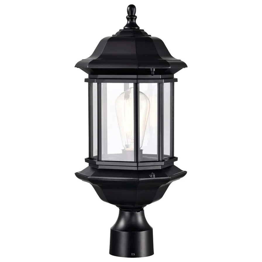 Reminiscent of Tudor-inspired style, the Hopkins Outdoor Lighting Collection guarantees an elegant grace to your home's exterior. Perfect illumination is provided with multiple clear glass panes showcasing the bulb; go with a vintage-filament bulb for maximum effect. A matte black finish accentuates the curves and planes of the die-cast aluminum fixture body with its rich depth. The time-honored design of this large post light will shine brightly on your home's exterior landscape for years to come.