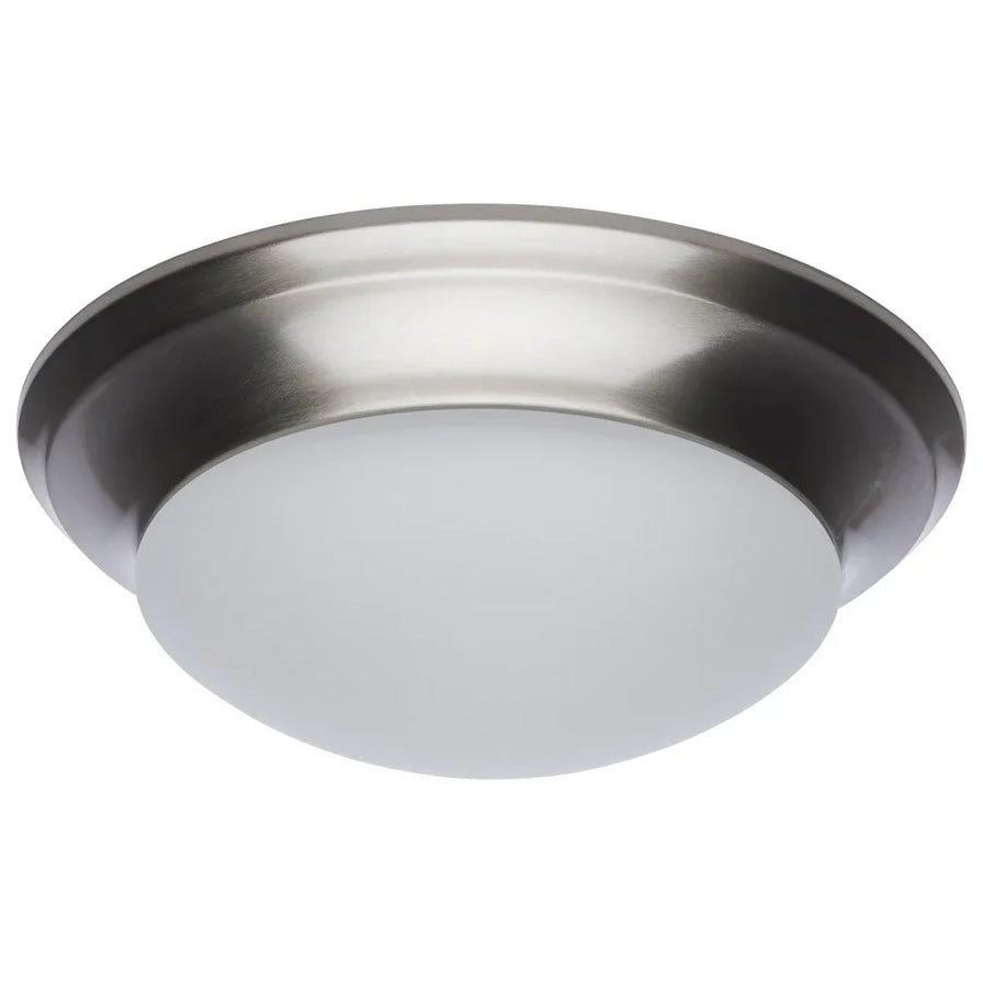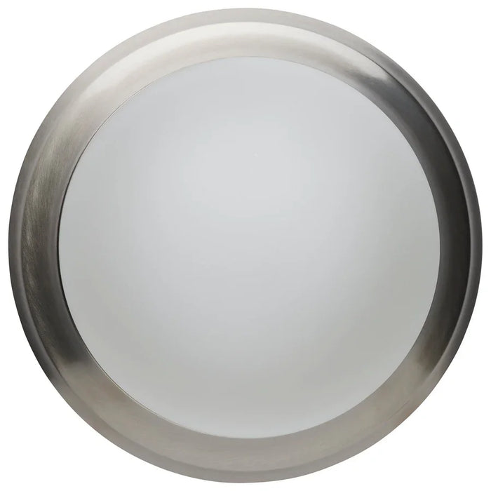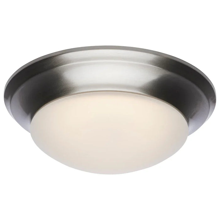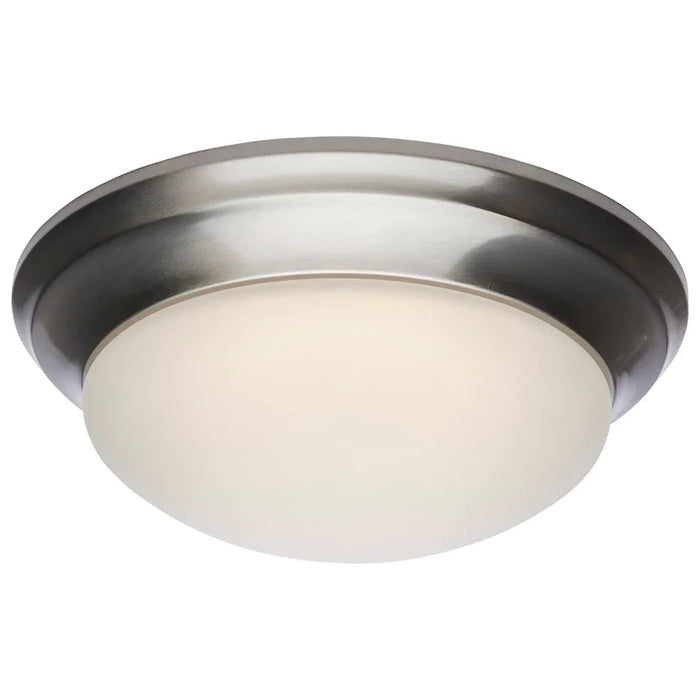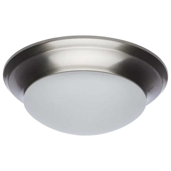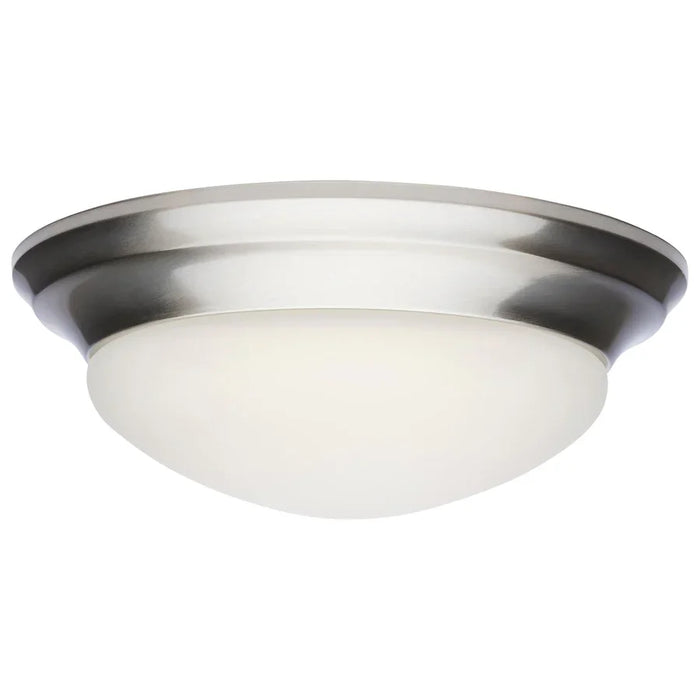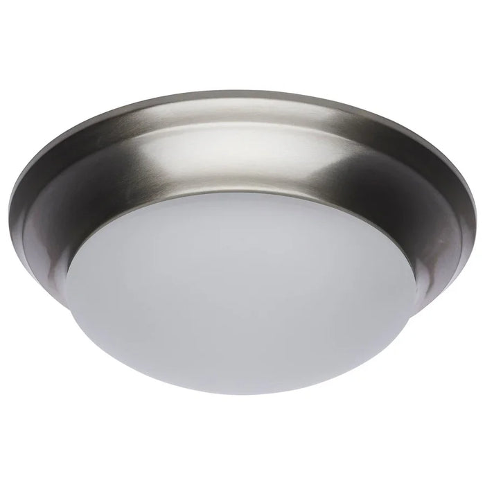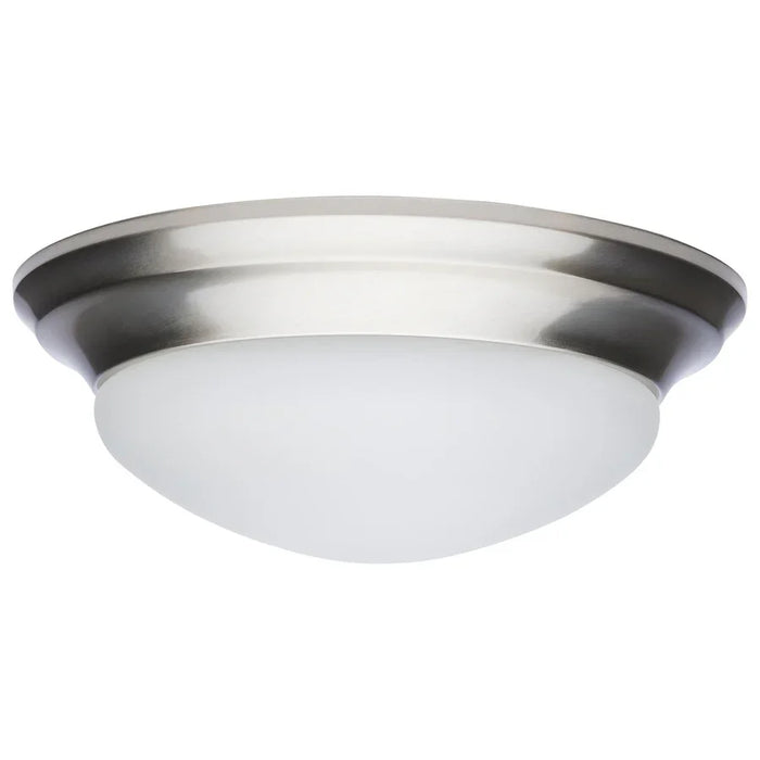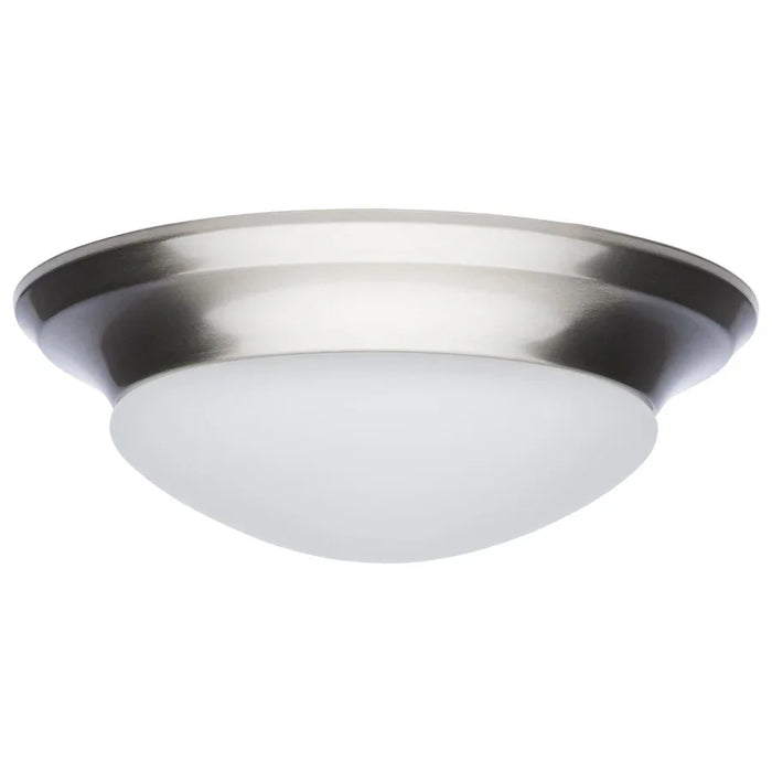 Nuvo's 18-watt, 12 inch flush mount twist and lock fixture features a brushed nickel finish with frosted glass. Damp rated, this fixture is ideal for illuminating kitchens, hallways, bedrooms, and stairwells in residential and multi-family environments. Energy efficient with integrated LED technology, this flush mount fixture delivers 50,000 hours of exceptional illumination.