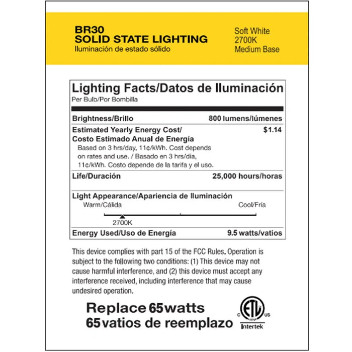 LED BR30 Flood 9.5W 2700K Dimmable 90+ CRI 800 Lumen White Housing T20 T24 JA8-2019 (Performance Series) (6-Pack)