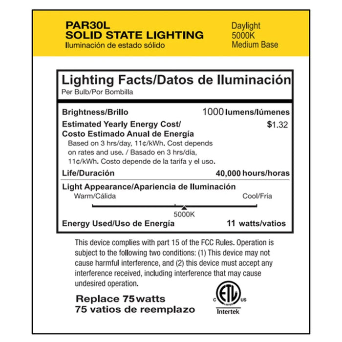 LED PAR30L Flood 11W 5000K 40Deg Dimmable 90+ CRI 1000 Lumen White Housing T20 (Performance Series) (6-Pack)