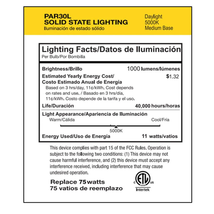 LED PAR30L Narrow Flood 11W 5000K 30Deg Dimmable 90+ CRI 1000 Lumen White Housing T20 (Performance Series) (6-Pack)