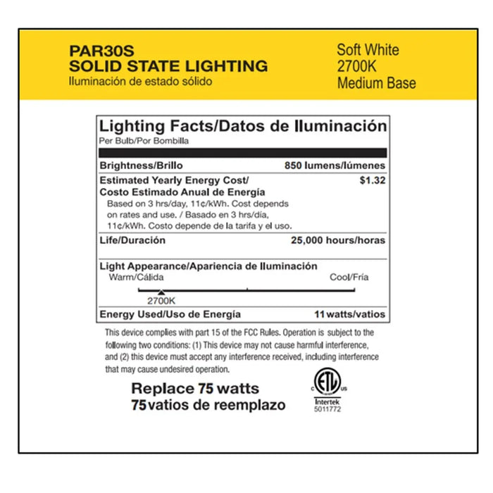 LED PAR30S Flood 11W 2700K 40Deg Dimmable 80+ CRI 850 Lumen White Housing (Essential Series) (6-Pack)