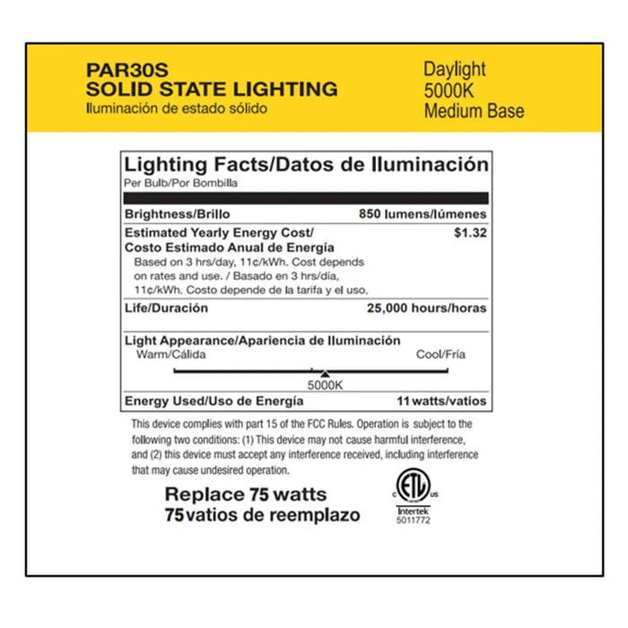 LED PAR30S Flood 11W 5000K 40Deg Dimmable 80+ CRI 850 Lumen White Housing (Essential Series) (6-Pack)
