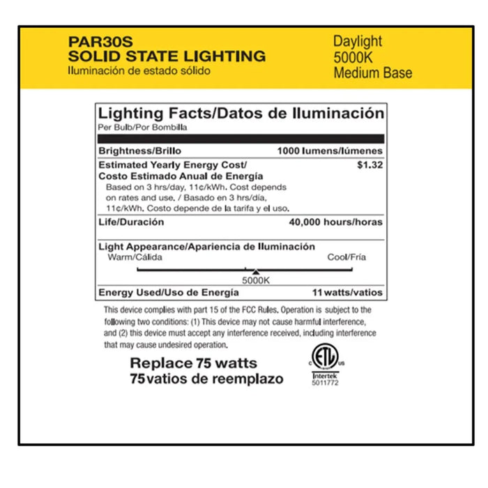 LED PAR30S Flood 11W 5000K 40Deg Dimmable 90+ CRI 1000 Lumen White Housing T20 (Performance Series) (6-Pack)