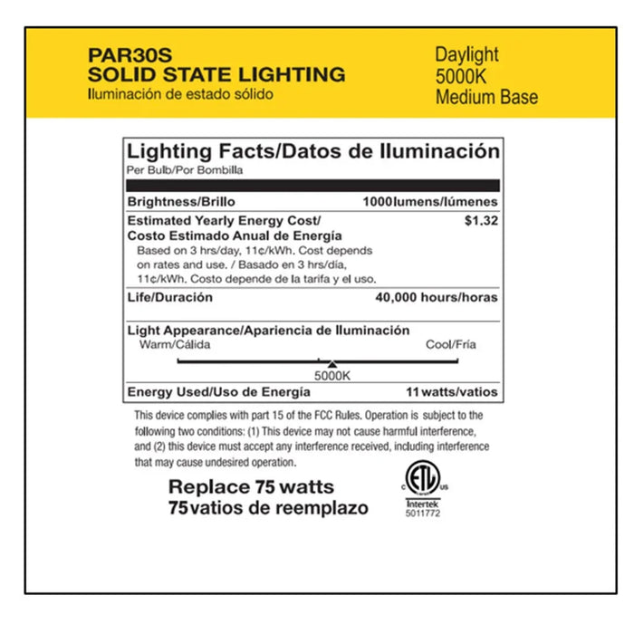 LED PAR30S Narrow Flood 11W 5000K 30Deg Dimmable 90+ CRI 1000 Lumen White Housing T20 (Performance Series) (6-Pack)
