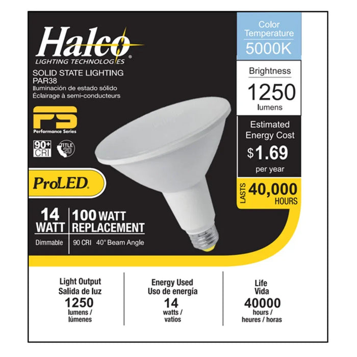 Halco LED PAR38 Flood 14W 5000K 40Deg Dimmable 90+ CRI 1250 Lumen White Housing T20 T24 JA8-2019 (Performance Series) (6-Pack). Cool White LED PAR Floods.