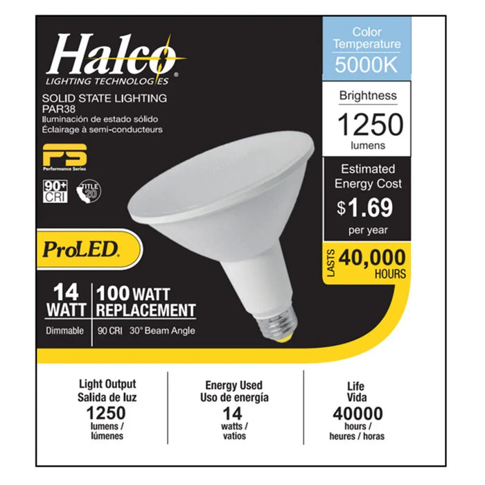 Halco LED PAR38 Narrow Flood 14W 5000K 30Deg Dimmable 90+ CRI 1250 Lumen White Housing T20 T24 JA8-2019 (Performance Series) (6-Pack). Cool White LED PAR Floods.