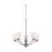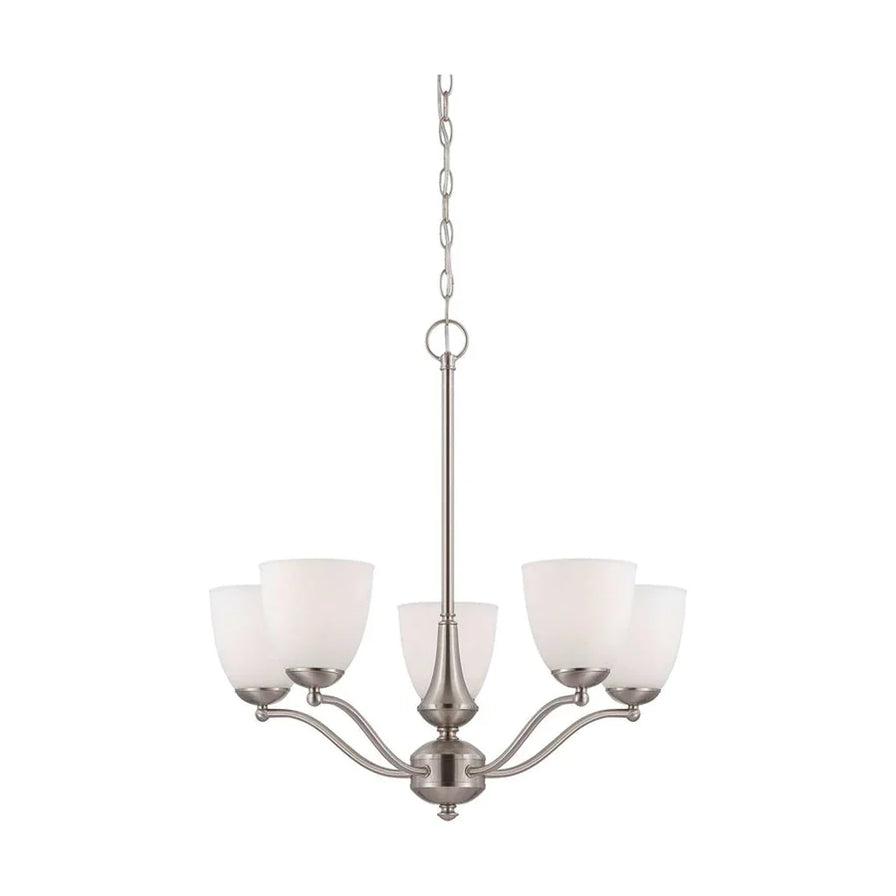 The classically inspired Patton series finished in brushed nickel or prairie bronze and accented by frosted glass shades, is the largest and most versatile of our new design collections. In addition to the usual configurations, Patton features a 4-light vanity, a flush dome and 3 and 5-light chandeliers which are available in both arm-up and arm-down configurations. There is nowhere these fixtures cannot go.