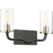 Nuvo's Sherwood 2 light, 16 inch vanity fixture is an understated lighting solution for inside the home. Illuminate dining rooms, living rooms, hallways, and foyers, with this iron black fixture featuring brushed nickel accents. Dual T9 bulbs sit behind the clear glass of this charming vanity fixture. Contemporary and elegant, the Sherwood collection adds style to any home decor.