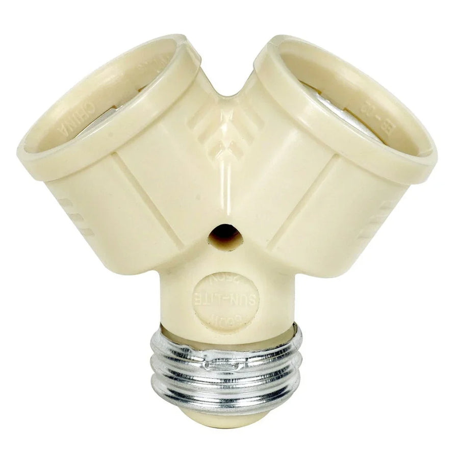 Single to Twin Lampholder - Ivory Finish - 2-3/4" Overall Height - 2" Extension - 660W Max - 250V Total