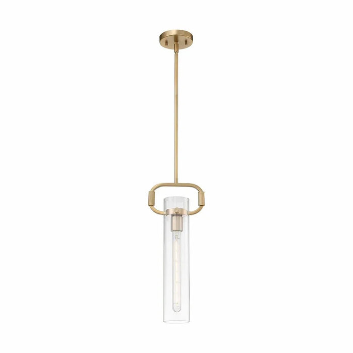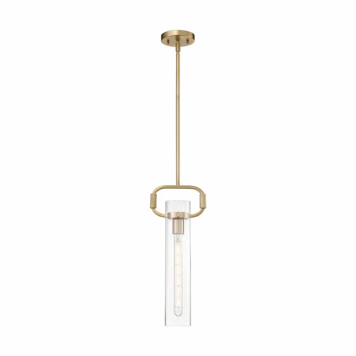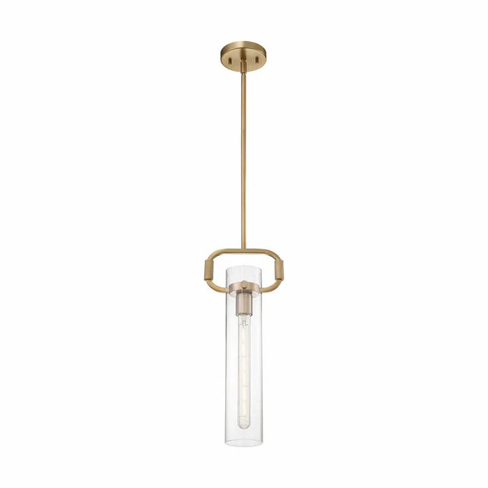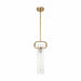 The Teresa 1 lite retro-industrial Cylinder Pendant measures 4-3/4 inches by 19-3/4 inches. With its clear glass shade and exciting transition to burnished brass hardware, this understated design is impressive with a nostalgic Edison Style Bulb. The Teresa Cylinder Pendant adds sophisticated style over a sink or grouped in a linear fashion that will complement many applications.