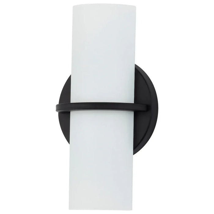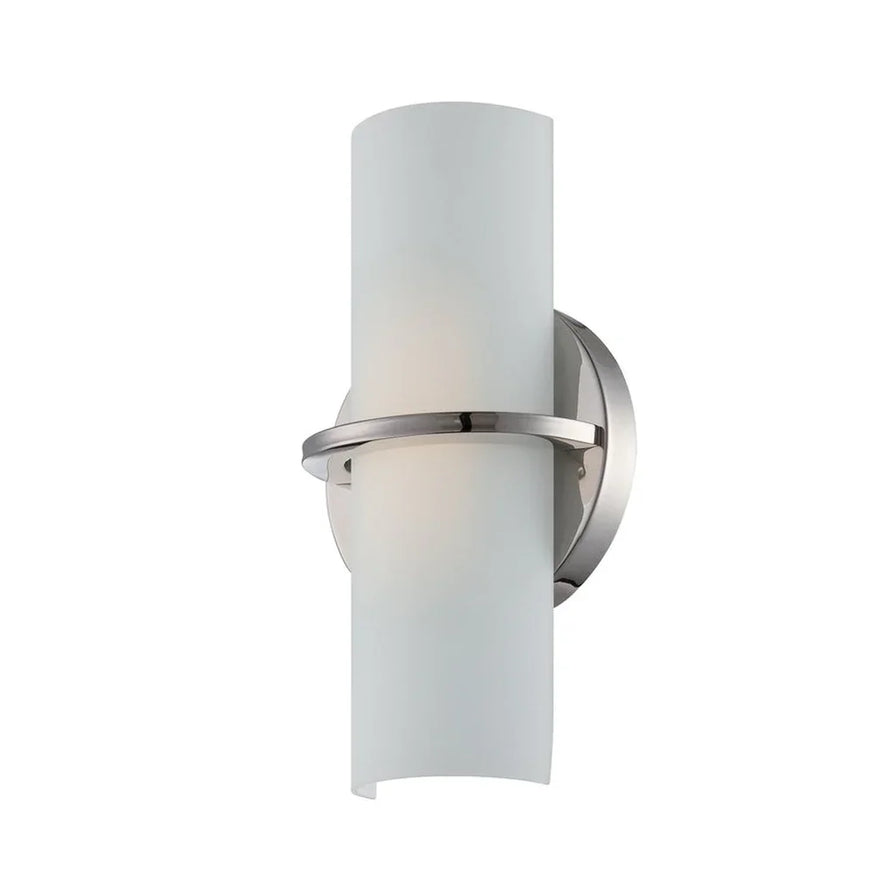 Nuvo's Tucker LED wall sconce is a contemporary lighting solution for inside the home. Illuminate living rooms, dining rooms, hallways, and foyers with this polished nickel sconce featuring etched opal glass. This versatile vanity fixture can be installed either up or down. Sophisticated and elegant, the Tucker collection adds style to any home decor.